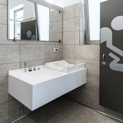 piano fasciatoio – vasca lavaggio neonati completa di piletta con saltarello, doccetta e miscelatore termostatico.